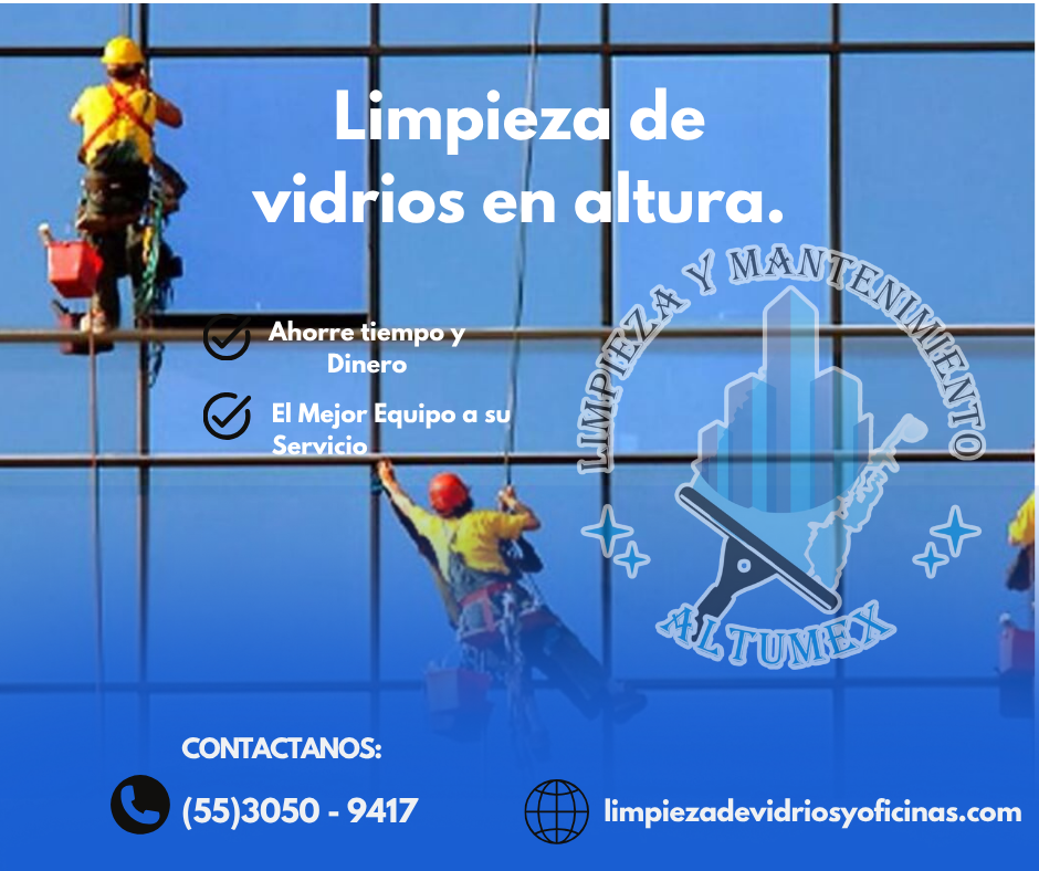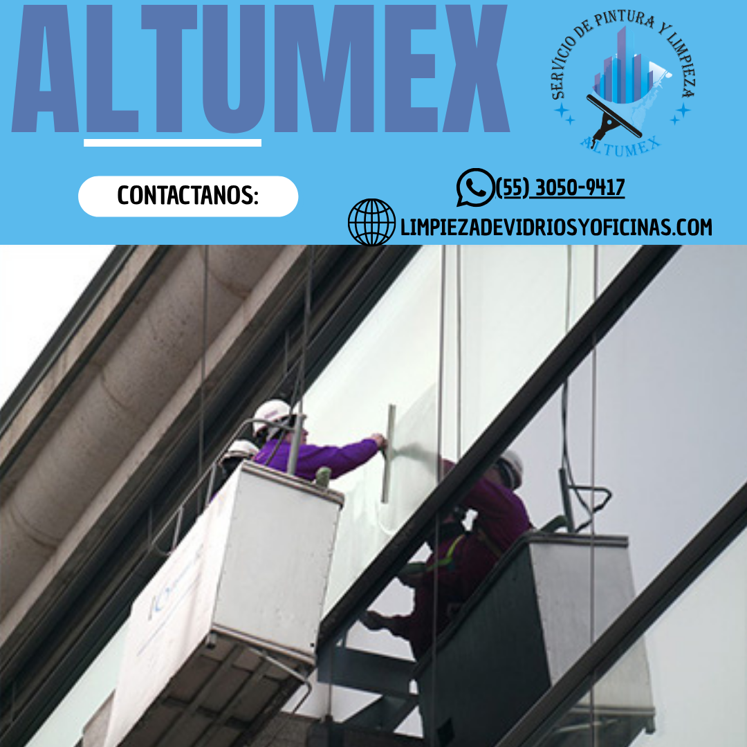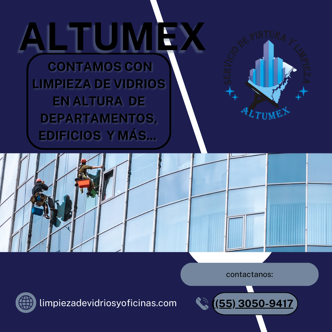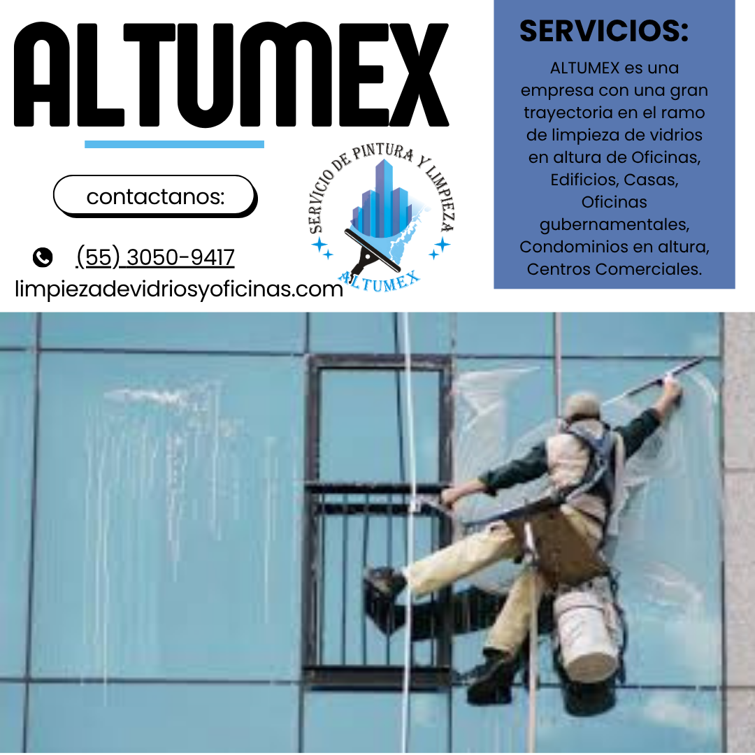 ALTUMEX, es una empresa que ofrece servicios de limpieza de vidrios en altura en la cdmx y mantenimiento en general, proporcionamos beneficios para tu empresa al contratarnos ya que los servicios de limpieza que ofrecemos no sólo es realizar limpieza de vidrios en altura si no es mantener lugares limpios y libres de infecciones y sobre todo obtener un lugar agradable donde puedan trabajar en armonía creando un ambiente laboral saludable y sobre todo limpio.