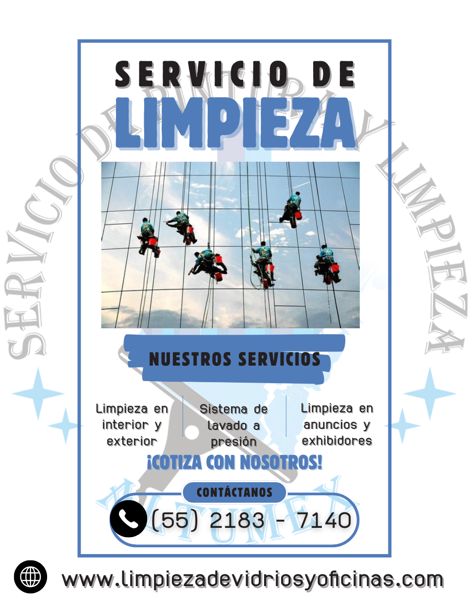 Nuestro equipo de trabajo utiliza, materiales de gran calidad, así como herramientas adecuados al servicio de limpieza de vidrios en altura cumpliendo con las normas de seguridad actuales, lo que nos permite lograr una operación ágil, confiable y sobre todo segura, tenemos un alcance en toda la cdmx, así como puebla, monterrey, toluca, aguascalientes, contamos con costos muy competitivos.