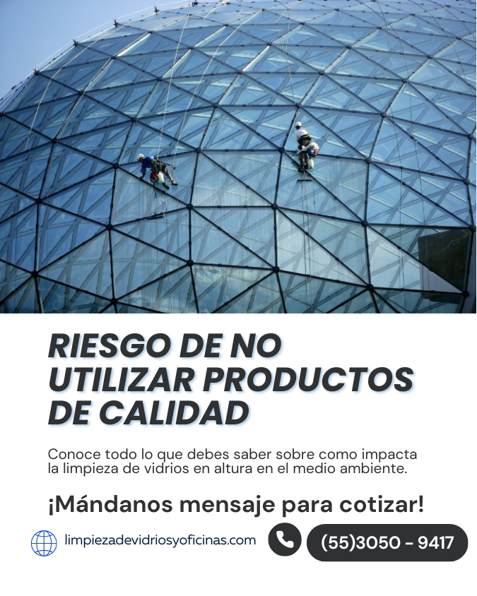 Al utilizar productos caseros y combinarlos sin conocimiento llega a generar reacciones químicas peligrosas ya que los productos no son compatibles, lo que ocasiona que se generen gases tóxicos o sustancias corrosivas. Estas mezclas dejan residuos que opacan y afectan la durabilidad de los vidrios al momento de realizar una limpieza de vidrios en alturas. Por este motivo les recomendamos que no utilicen productos caseros y meno en la CDMX que es una ciudad muy poblada.